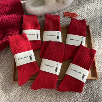 suxinaimin本命年袜子女新年中筒袜鸿运蛇年国潮红色大红诸暨棉袜