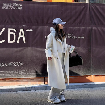 双面羊毛大衣女秋冬韩系双排扣中长款过膝宽松高端羊毛呢外套