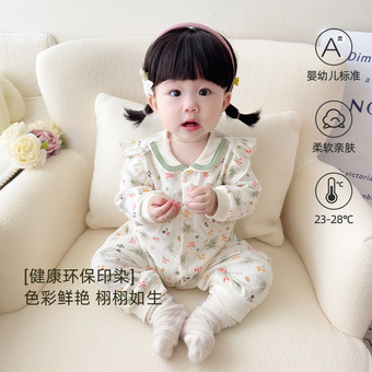 新生儿宝宝春秋长袖连体衣纯棉哈衣婴儿和尚服宝宝睡衣外出爬服